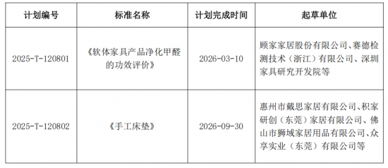 根據(jù)《深圳市家具行業(yè)協(xié)會團體標準管理辦法》(2024 修訂版)的相關(guān)規(guī)定, 協(xié)會標準化技術(shù)委員會組織對《軟體家具產(chǎn)品凈化甲醛的功效評價》、《手工床墊》 兩項團體標準的立項申報材料進行了立項論證審議。經(jīng)審議,兩項提案均具備科學性與可行性,符合立項條件,現(xiàn)批準立項并納入標準制定計劃。
