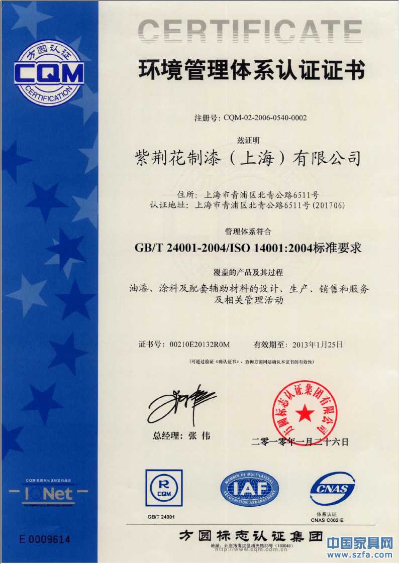 發(fā)證機(jī)構(gòu):   方圓認(rèn)證集團(tuán)有限公司 發(fā)證時(shí)間 :   2010-01-26