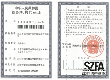 | 發(fā)證機(jī)構(gòu): | 北京市朝陽區(qū)質(zhì)量技術(shù)監(jiān)督局 | 發(fā)證時間 : | 2013-02-22 |
