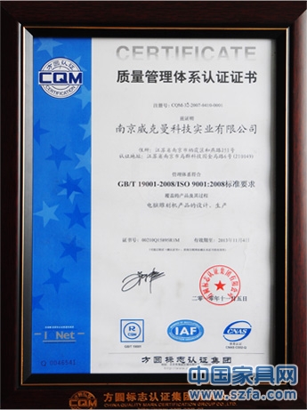 榮譽(yù)資質(zhì) 質(zhì)量管理體系認(rèn)證證書