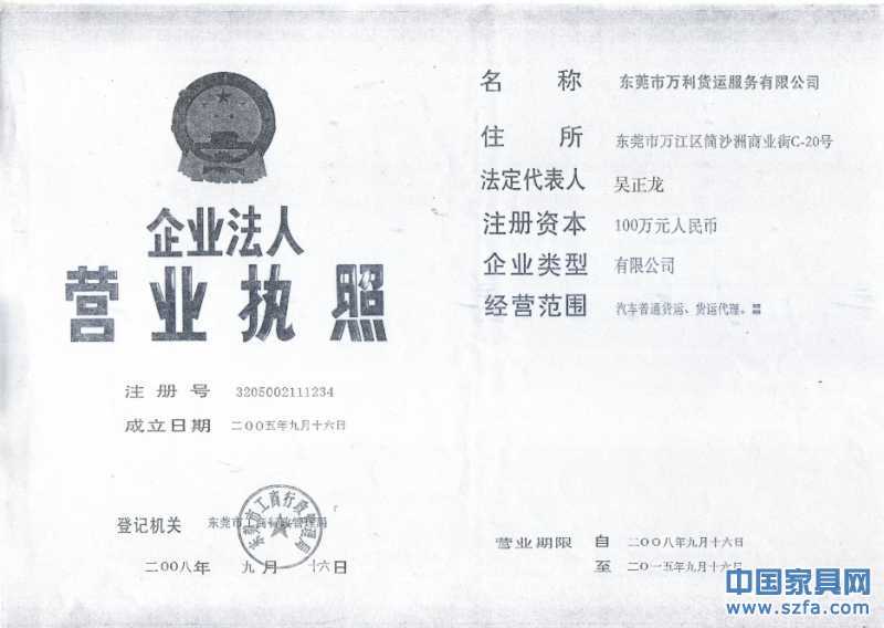 | 發(fā)證機構(gòu): | 東莞市工商局 | 發(fā)證時間 : | 2011-11-02 |