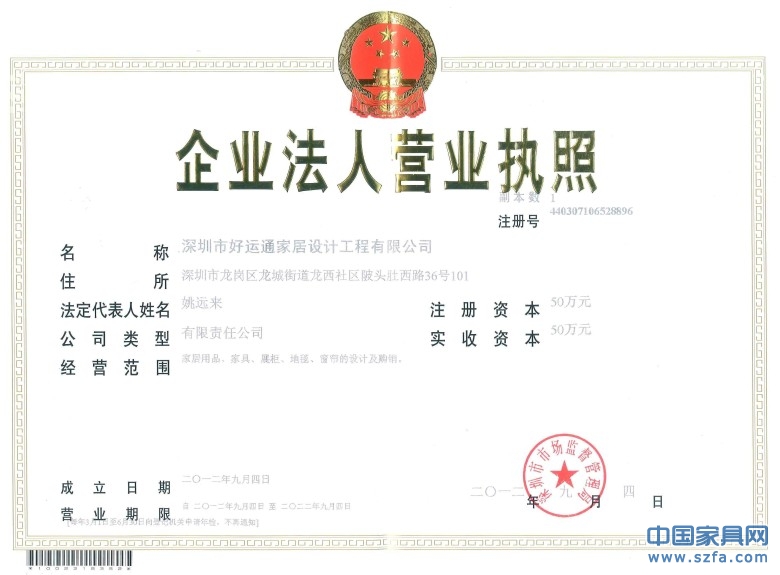 榮譽(yù)資質(zhì) 深圳好運(yùn)通家具設(shè)計工程公司營業(yè)執(zhí)照