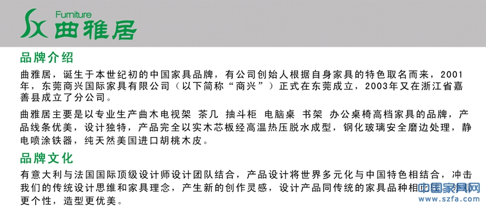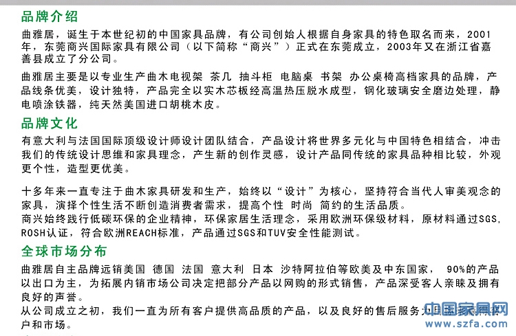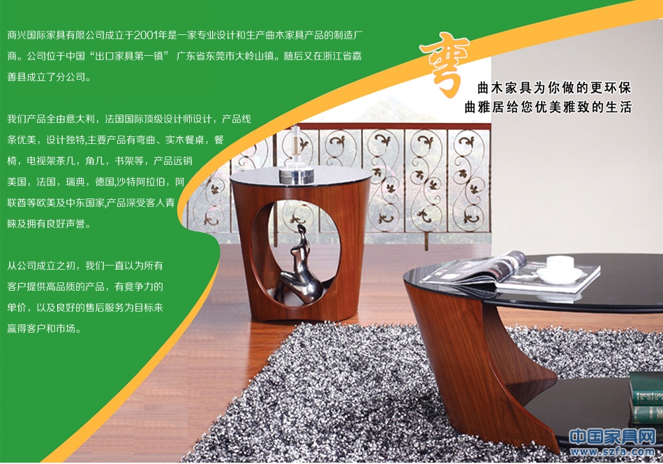 東莞市商興木業(yè)有限公司是專注于曲木家具、曲木電腦桌、曲木餐桌、曲木椅子、曲木電視柜、曲木電視架、書架書柜、儲(chǔ)物架、置物架、茶幾、咖啡桌、液晶電視掛架、辦公桌、餐桌、桌椅、客廳家具、住宅家具、辦公家具等產(chǎn)品的專業(yè)設(shè)計(jì)、生產(chǎn)、銷售一體的公司,成立19年來,設(shè)計(jì)的款式500多種,專例產(chǎn)品100多種,擁有完整、科學(xué)的質(zhì)量管理體系,年銷售額1.3億,出口額近億元。東莞市商興木業(yè)有限公司的誠信、實(shí)力和產(chǎn)品質(zhì)量獲得業(yè)界的認(rèn)可。歡迎各界朋友蒞臨參觀、指導(dǎo)和業(yè)務(wù)洽談。http://quyaju.tmall.com/