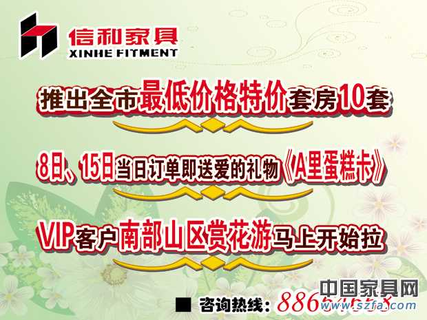 信和家具作為濟南本土首家實木家具企業(yè),為感恩回饋老顧客的支持與厚愛,值此315期間特此舉辦“信和惠泉城,特價齊分享”的活動: