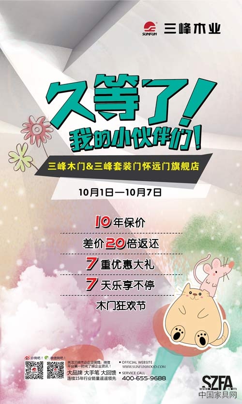 金九銀十,硝煙再起!我的小伙伴們,是否還在等待更低折扣,是否還在為選擇而糾結(jié)?三峰讓您久等了,我的小伙伴們!9月14日至10月7日三峰木門、三峰套裝門懷遠(yuǎn)門旗艦店再次裸價(jià)惠沈城。