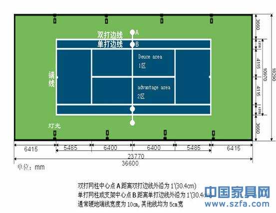 其次需選擇確定網(wǎng)球場的地址,并且根據(jù)其周邊的環(huán)境,規(guī)劃出最合理的建設(shè)方案。主要考慮的因素有:場地土質(zhì)的狀況,凍土層的厚度,地下水的位置,球場的方向,水泥或?yàn)r青基礎(chǔ)的選擇,多片球場相連時(shí)空地間隔的大小等。建造網(wǎng)球場要因地制宜,不過最少要占用19× 37m的場地。