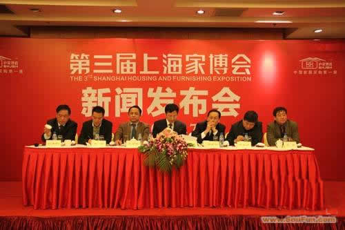 2010年12月7日,“第三屆上海家博會”新聞發(fā)布會在光大國際大酒店隆重舉行,上海商務(wù)委貿(mào)促處處長蔣雪根、上海裝飾裝修行業(yè)協(xié)會常務(wù)副秘書長郟祥均、上海家博會組委會主任茅萬青、上海市裝飾裝修行業(yè)協(xié)會材料委員會秘書長應(yīng)再揚(yáng)、家博會承辦單位上海華墨展覽服務(wù)有限公司總經(jīng)理王國平等出席了新聞發(fā)布會。另有來自上海市前30強(qiáng)知名家裝公司、200多家品牌建材家居企業(yè)、數(shù)十家行業(yè)權(quán)威媒體的300多名代表參加了新聞發(fā)布會。
