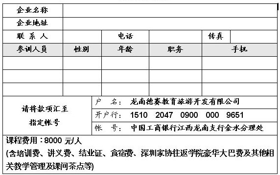 學(xué) 費(fèi):8000元/人(不含學(xué)員駐地至深圳及學(xué)員自行前往龍南的交通費(fèi))。