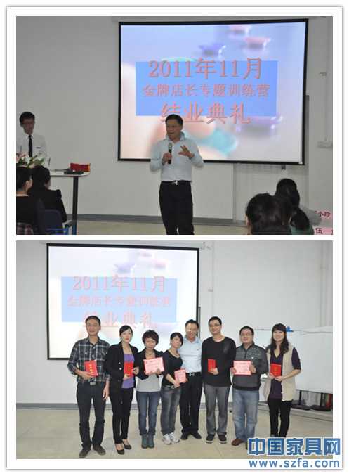 17日晚上的店長班的結(jié)業(yè)典禮神秘嘉賓現(xiàn)身,深圳市家具行業(yè)協(xié)會侯克鵬秘書長親臨現(xiàn)場,為優(yōu)秀團(tuán)隊頒獎以及為學(xué)員頒發(fā)了結(jié)業(yè)證書,結(jié)業(yè)典禮之后侯秘書長更與學(xué)員們一起聯(lián)歡。