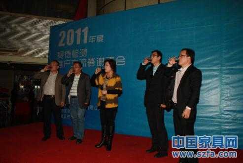 深圳市家具行業(yè)協(xié)會副秘書長劉麗娜帶領(lǐng)嘉賓上臺為大家致祝酒詞,答謝酒會正式開始。