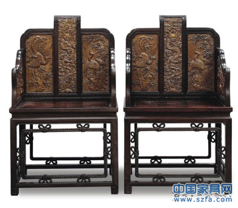 TOP10:清乾隆紫檀嵌樺木龍鳳扶手椅(一對)