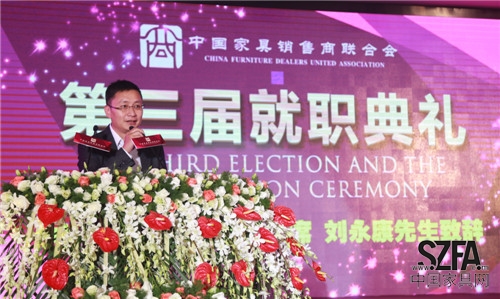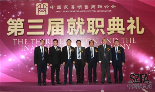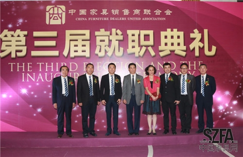 2014年9月4日,中國(guó)家具銷售商聯(lián)合會(huì)(以下簡(jiǎn)稱“家商聯(lián)”)第三屆就職典禮在東莞厚街名家具展3號(hào)館二樓宴會(huì)廳隆重舉行。北京克拉斯家居集團(tuán)董事長(zhǎng)王大為先生當(dāng)選新任會(huì)長(zhǎng),河北創(chuàng)典居家具董事長(zhǎng)趙建軍先生當(dāng)選監(jiān)事長(zhǎng),郭新文先生當(dāng)選秘書長(zhǎng),帶領(lǐng)全體執(zhí)行會(huì)長(zhǎng)宣誓就職。