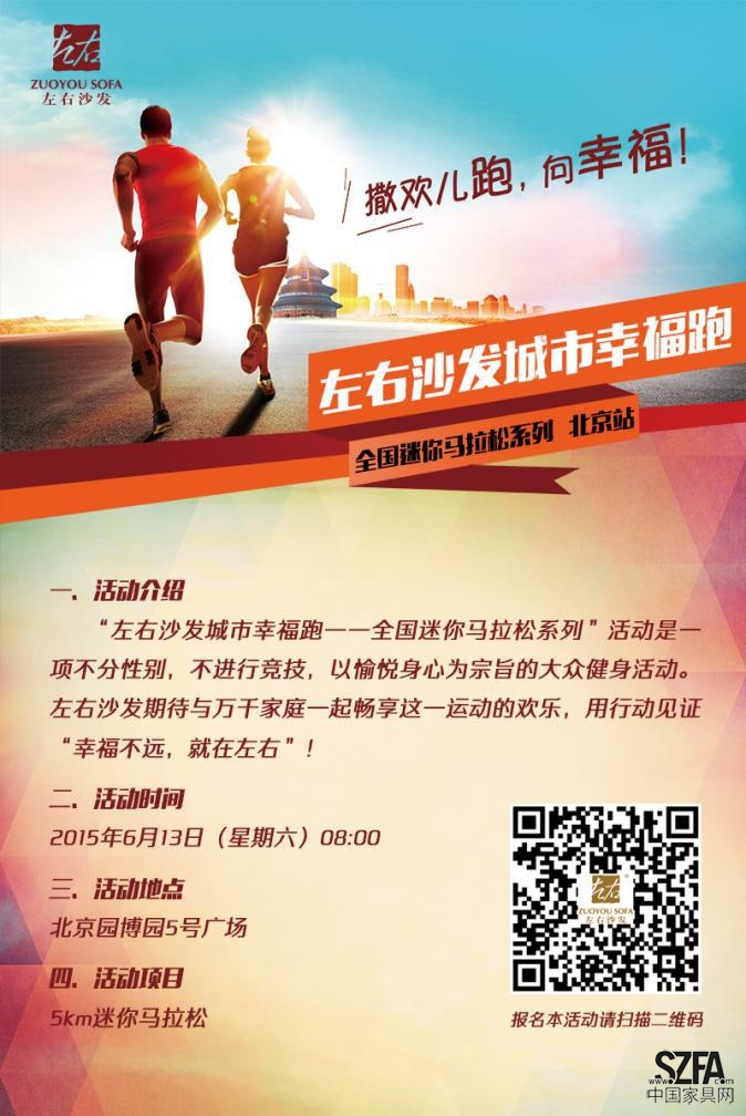 而在比賽現(xiàn)場(chǎng),左右沙發(fā)也將成為最佳配角。不僅在“城市幸福跑”賽道邊設(shè)置沙發(fā)體驗(yàn)區(qū),而且獎(jiǎng)品也是沙發(fā)以及與沙發(fā)有關(guān)的讓人心動(dòng)的家居精品。