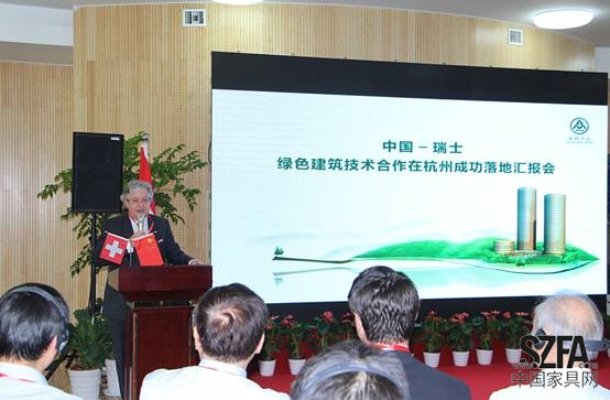 日前,由中國綠色建筑委員會、瑞士環(huán)境科技促進署舉辦的中國—瑞士綠色建筑技術(shù)合作成功落地匯報會在杭州盛大舉行。今年是中瑞建交65周年,以中瑞兩國在各個領(lǐng)域的成功合作典范為展示目標(biāo)的活動在全國各地陸續(xù)展開,這次研討活動就是緣起于“亞科中心”這個中瑞共同打造的綠色節(jié)能建筑,活動邀請到了瑞士聯(lián)邦駐華大使戴尙賢先生,瑞士工程科學(xué)院院士,歐洲頂級建筑節(jié)能大師布魯諾•凱樂先生等重量級的政界和學(xué)術(shù)界人士。