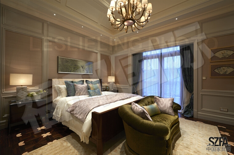 本次綠城桃花源樣板房的軟裝設(shè)計(jì)以高雅奢華的法式風(fēng)格為基調(diào),融入儒雅禪韻的東方元素。在風(fēng)格的把握上,福邸保留了之前樣板房所呈現(xiàn)的奢華感,通過對木飾面、墻紙等產(chǎn)品的選擇,減輕了空間的厚重感,取而代之的是一種優(yōu)雅而時(shí)尚的環(huán)境氣氛。