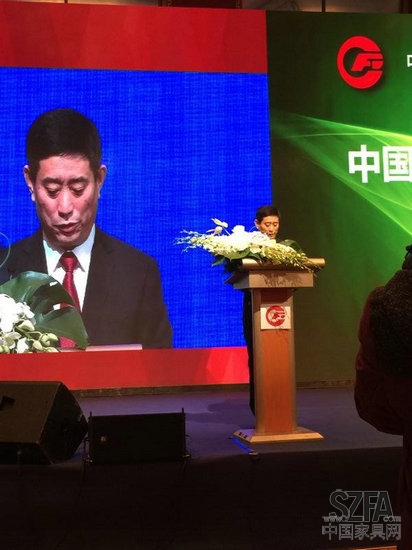 中國(guó)家具業(yè)協(xié)會(huì)理事長(zhǎng)朱長(zhǎng)嶺上臺(tái)發(fā)言
