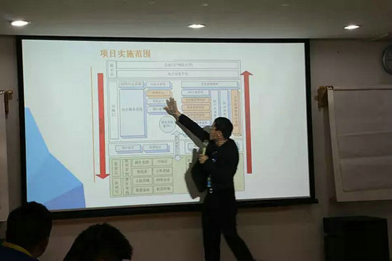 松堡王國項(xiàng)目經(jīng)理柒冰華向大家介紹本次項(xiàng)目實(shí)施范圍,項(xiàng)目組織架構(gòu)及各角色職責(zé)說明,并承諾全力以赴完成項(xiàng)目。