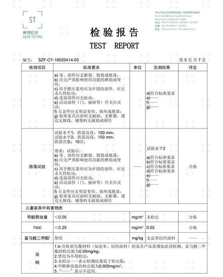①單層床:常規(guī)性能:外型尺寸偏差、外觀要求、理化性能要求、木材含水率、結(jié)構(gòu)安全要求、警示標(biāo)示;環(huán)保性能:表面涂層可溶性重金屬、總鉛 表面涂層鄰苯二甲酸酯、木材中五氯苯酚、木材中總砷、兒童家具中整體甲醛釋放量、兒童家具整體總揮發(fā)性有機(jī)化合物。