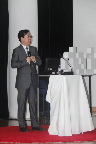 ▲許柏鳴院長正在為大家講解潮流應(yīng)用與設(shè)計(jì)思潮的流變