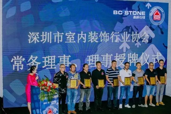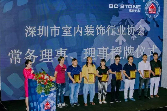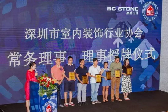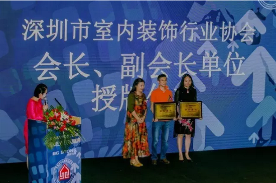 隨后,由深圳大學(xué)土木學(xué)院副院長(zhǎng)隋莉莉教授和深圳新聞網(wǎng)總經(jīng)理龍建濤一起為協(xié)會(huì)揭牌,并分別為深圳室內(nèi)裝飾行業(yè)協(xié)會(huì)第一屆領(lǐng)導(dǎo)班子授牌。