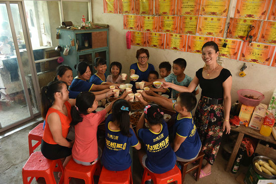 松堡王國南昌朱總為鐘桂清(左一)家庭送去愛心與溫暖
