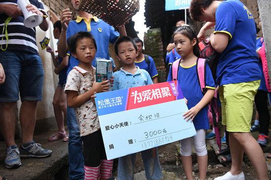 鐘平峰小朋友,他的媽媽和姐姐都是精神病患者,爸爸一個人外出打工賺取一點微薄的勞工費,家里只靠70多歲的奶奶照顧,家里經(jīng)濟條件真的非常困難,松堡王國愛心團(深圳、南昌、蘇州)除了帶去零食、學(xué)習用品之外,還總共為鐘平峰小朋友愛募捐了13000元善款!