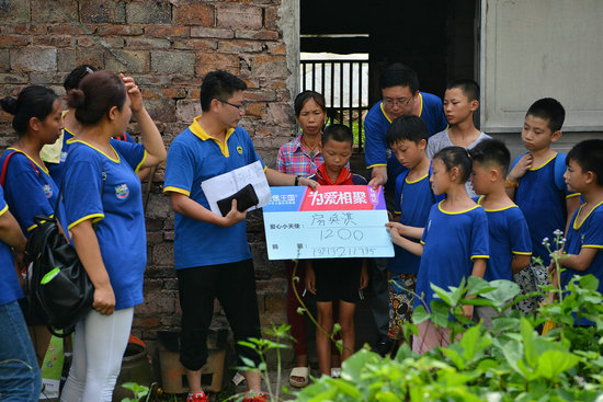 鐘桂清小朋友,沒有爸爸的照顧,媽媽改嫁,弟弟腦癱,全家就靠一個70多歲奶奶照顧,三個人擠在一間破爛不堪的泥房里面,因為兩個小孩都沒有戶口,無法享受低保或者弟弟委托福利院照顧。得知情況后松堡王國南昌朱總立即通過微信募捐得6500元善款,松堡王國營銷總監(jiān)汪總再三交代村長解決落實孩子戶口問題,以便解決低保困難!