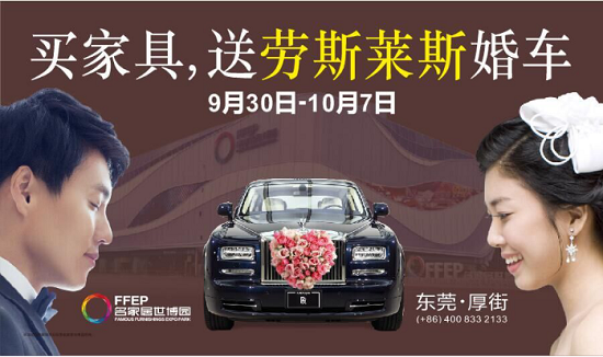 買家具送勞斯萊斯、送婚紗照、送婚房、送蜜月度假……盡在中國(guó)家具展貿(mào)之都東莞厚街名家居世博園“金秋婚禮季”。