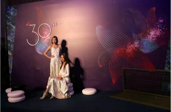 盛典的會(huì)場(chǎng)與眾不同,置身其間就如同置身于浩瀚的星空,周圍是濃情的紫和閃爍的星光,而盛典中隨處可見的logo是在這星光下開放的百合花,花中可見顆顆珍珠。在西方,百合花是30年結(jié)婚紀(jì)念日花;在東方,珍珠是貝殼含辛茹苦孕育的精華。如此既有天地合一的意蘊(yùn)又具備西方視野的設(shè)計(jì)一改往常,結(jié)合邀請(qǐng)函所言“去迎接那星辰浩瀚的時(shí)代”,怎不讓人遐想無(wú)限。