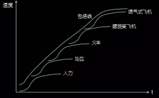 速度只是人類技術(shù)進化的一個典型案例,其它幾乎所有的技術(shù)都依循著這樣的規(guī)律。因此,這個“S型”曲線的原理具有普適性。