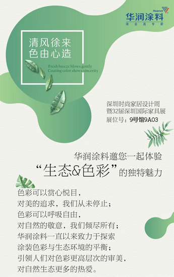 華潤涂料“生態(tài)&色彩”大潮即將駕臨深圳時尚家居設(shè)計周
