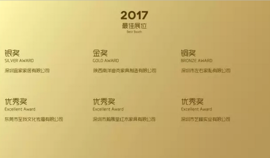 2017深圳國(guó)際家具展金汐獎(jiǎng)最佳展位名單
