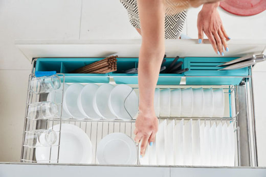 可整體提放的碗碟架、調(diào)味架、杯架、盒子,使用時(shí)方便置于案臺(tái)或清潔,用畢迅速回籠籃體歸位,便利操作,為廚房作業(yè)提速。