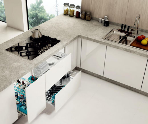 采用三維立體空間設(shè)計(jì),籃體每一處空間都暴露在設(shè)計(jì)師的眼里,根據(jù)特定的廚房環(huán)境和功能布置,空間得到合理布局,最大限度提高籃體的儲(chǔ)存量,據(jù)統(tǒng)計(jì),有效提高籃體30%-50%的空間利用率。