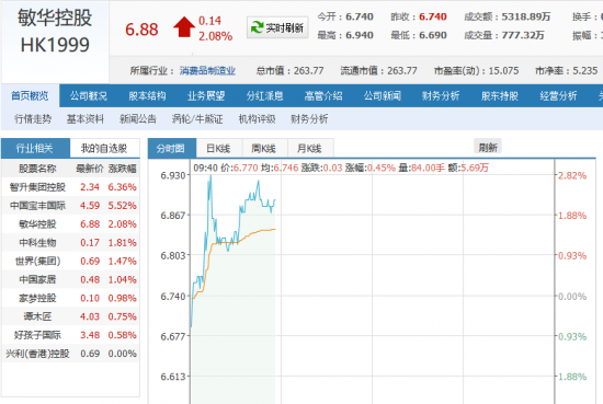 6月13日敏華控股股價(jià)持續(xù)上漲