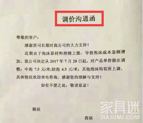 漲價(jià)告急!部分海綿廠發(fā)布調(diào)價(jià)通知