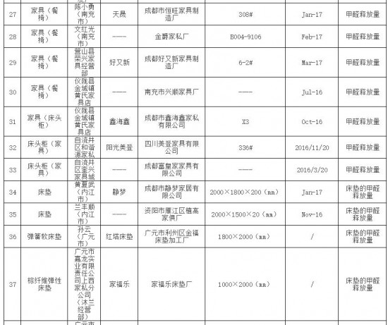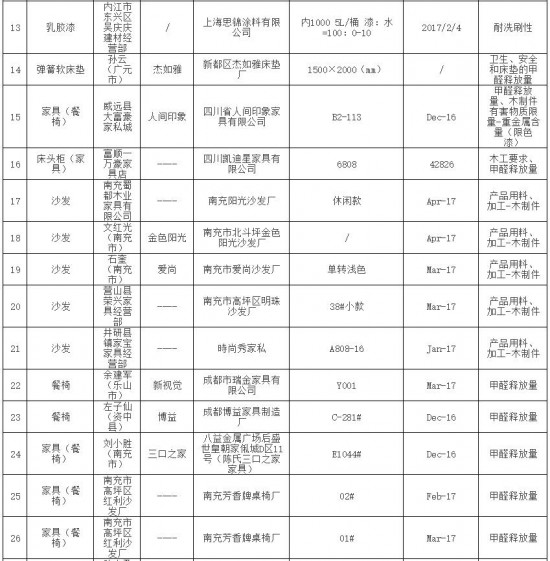 日前,四川省工商局公布最新商品質(zhì)量抽檢結(jié)果,標(biāo)稱商標(biāo)為“家家樂”等41批次涂料、膠粘劑、家具、床墊不合格,家具、床墊甲醛釋放量超標(biāo)問題較突出。