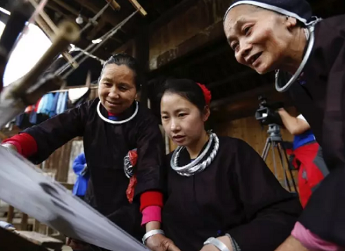 在十九大召開(kāi)期間,粟田梅作為優(yōu)秀的傳統(tǒng)文化傳承者接受了采訪:“侗錦織造是老祖宗留下的手藝,不能丟了。我們有責(zé)任讓更多的年輕人喜歡它,把它發(fā)揚(yáng)光大。”她正是用雙手,一絲一線實(shí)現(xiàn)自己一直堅(jiān)持的侗錦夢(mèng)。