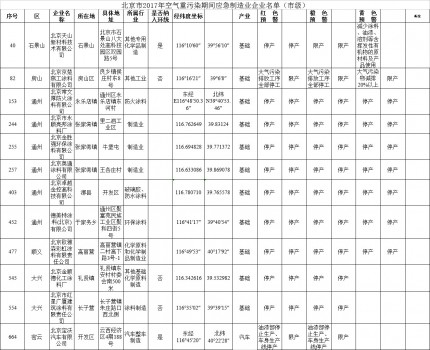 近日,《北京市2017年空氣重污染應急制造業(yè)企業(yè)停限產名單》(下稱名單)也被詳細披露。據稱,今年北京的市級停限產企業(yè)數量激增500家,其總數由2016年的212家迅速攀升到712家。此前,北京對于企業(yè)減排措施應滿足何種減排比例無具體要求,但在新版的預案中則增加了相應的減排比例要求。