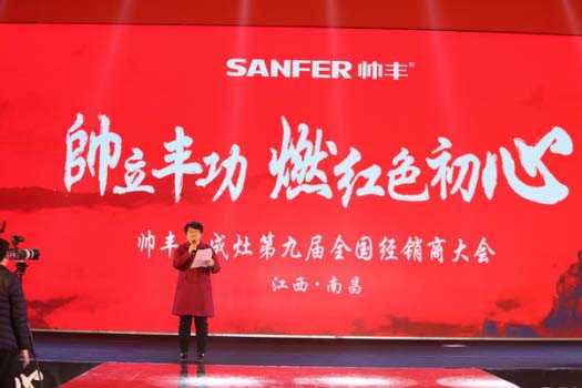 2018年1月18日,在江西南昌這片渲染了革命色彩的土地上,帥豐集成灶第九屆全國經(jīng)銷商大會踏著革命先烈的步伐,在這里開始了新一年的起航。 開場激情昂揚的國歌。并且?guī)涁S董事長商若云女士上臺,帶領(lǐng)帥豐家人為帥豐宣誓。