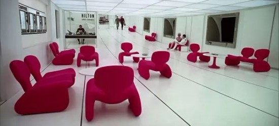 電影中的中轉(zhuǎn)空間站,也是之后空間設(shè)計(jì)喜聞樂(lè)道的典型之一。它也顛覆著傳統(tǒng)的感官印象,沒(méi)有金碧輝煌的大堂,有的是簡(jiǎn)潔明亮,充滿線條感的大廳,著名的紅色Djinn chair分散于大堂之中,前衛(wèi)卻不失柔軟圓潤(rùn)的造型和濃烈的色彩,成為這個(gè)空間的點(diǎn)睛之筆。