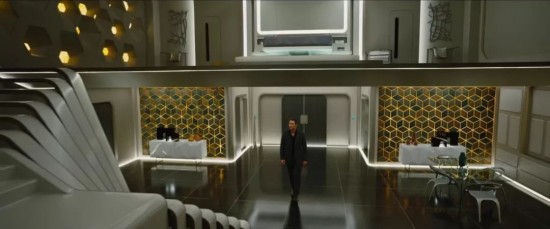 通往飛船“神經(jīng)中樞”的走廊呈現(xiàn)出工整的同心八邊形,較為柔和的邊角削弱了電影本身題材帶來(lái)的冰冷感,宇航員橙色的宇航服與四周的黑白形成了有趣的對(duì)比,沒(méi)準(zhǔn)之后的我們能穿上更fashion的宇航服一起搖擺。