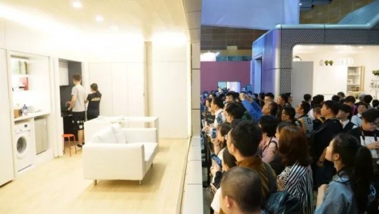 通過模特們的演示,觀眾可以很直觀的看到一個(gè)僅有32㎡的小公寓是如何毫無(wú)壓力的承載度假休閑時(shí)對(duì)公寓空間的各種需求。