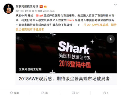 據(jù)美通社消息報(bào)道:近日,美國市場占有率第一的家電清潔品牌Shark計(jì)劃進(jìn)入中國市場,并推出旗下吸塵器和蒸汽拖把等明星新品。得知該消息,記者第一時(shí)間對(duì)信息進(jìn)行了核查,發(fā)現(xiàn)國內(nèi)多家媒體,包括王冠雄等多位知名自媒體人均對(duì)此進(jìn)行了揭秘。而記者也從國內(nèi)家電行業(yè)觀察人士那兒得到了進(jìn)一步的驗(yàn)證。
