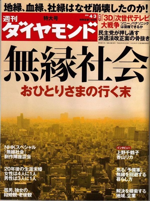 無血緣: 單身人士愈來愈多,目前日本有百分之十六的男性和百分之七的女性終身未婚。