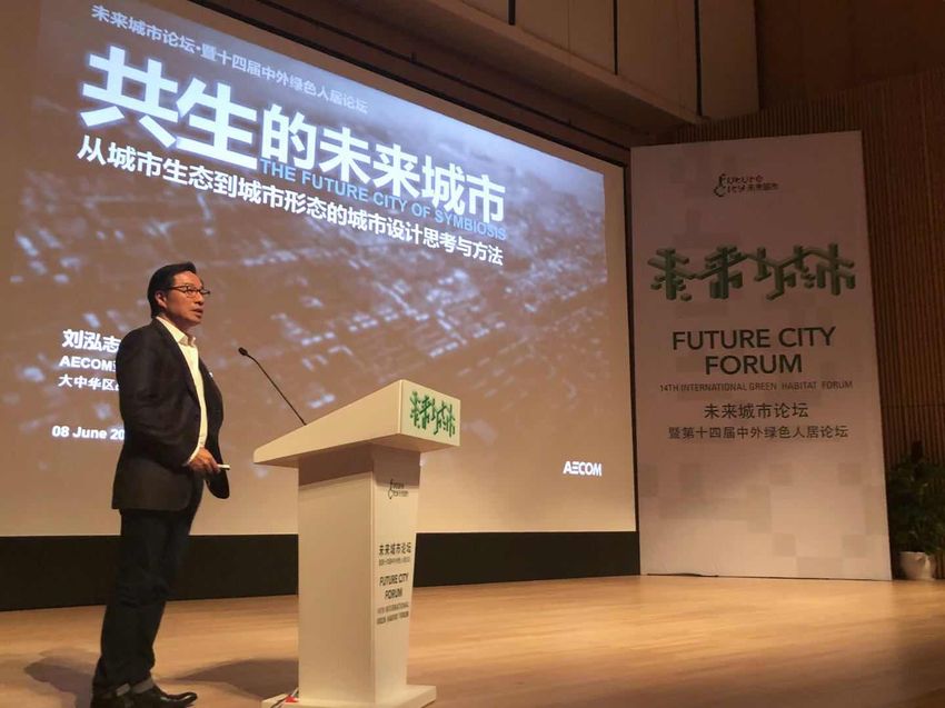 AECOM亞太區(qū)高級副總裁,大中華區(qū)城市戰(zhàn)略與發(fā)展負(fù)責(zé)人劉泓志發(fā)表了題為《共生的未來城市》的演講,他認(rèn)為城市的初衷是能夠有系統(tǒng)有組織的提供公共服務(wù),不管規(guī)模大或小,有這樣一個基礎(chǔ),才能夠稱之為城市。要從基礎(chǔ)設(shè)施的角度一并考慮來應(yīng)對城市的問題,這樣才能從更大范圍的角度理解城市生態(tài)。對于未來城市的構(gòu)想,他表示,未來的城市將是以人為核心,多樣生態(tài)復(fù)合共生的城市。追求理想的未來城市生活,我們必須探索物質(zhì)生態(tài),數(shù)字生態(tài),與社會生態(tài)相融合的城市智慧與能力?;貧w人性價值,才是理想城市的未來。