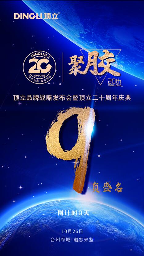 倒計時9天,頂立品牌戰(zhàn)略發(fā)布會暨20周年慶典將如期展開,獨屬于“行業(yè)膠王”的故事內(nèi)幕,輻射全行業(yè)業(yè)態(tài)動向的前沿信息,盡在10月26日臺州市旗隆萬豪酒店!