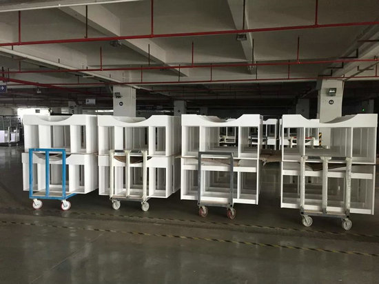 衛(wèi)浴家具企業(yè)生產線基本是機械化涂裝,生產工藝輥涂UV底/輥涂UV面、輥涂UV底/噴涂PU面、水性底/水性面等。家具企業(yè)需要根據自身產品的需求進行生產工藝的量身打造,如展辰在與箭牌衛(wèi)浴的合作中,針對箭牌衛(wèi)浴需求提出了輥涂UV底/輥涂UV面的產品及生產工藝,針對恒潔衛(wèi)浴對產品光澤以及產品表面效果要求較高的需求,提出了輥涂UV底/噴涂PU面的產品和生產工藝等。