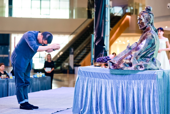 為感念祖先,展望未來,魯班學院院長陳飛杰老師代同行進行了禮敬建筑之圣——魯班的儀式活動。