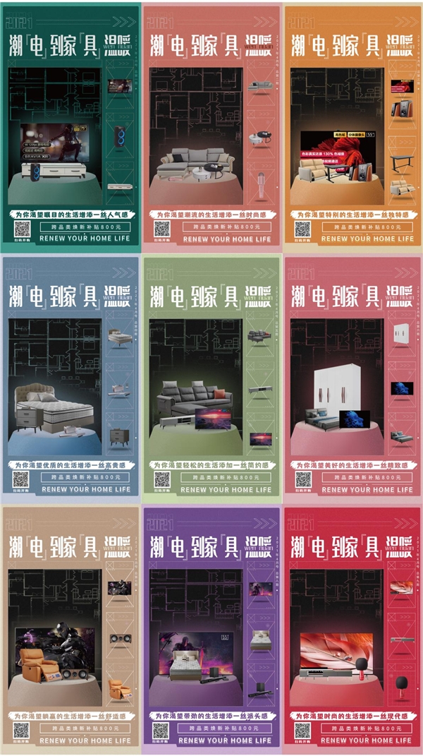 為了全面觸達(dá)更多的消費(fèi)者,讓更多的消費(fèi)者知道此次活動,并且以最優(yōu)惠的價格入手最優(yōu)質(zhì)的商品,京東電視影音聯(lián)合京東家具,不僅給到了巨額優(yōu)惠,頭號京貼每滿300減30,跨品類煥新補(bǔ)貼800元,以舊換新最高補(bǔ)貼4000元,還聯(lián)合各大社交媒體平臺KOL,圍繞活動主題,打造創(chuàng)新互動話題“潮電煥新家”,并以social海報(bào)的形式,給到消費(fèi)者更貼心的創(chuàng)意搭配和建議。希望借此互動,傳播“京東有潮「電」,新家「具」溫暖”的活動理念,為消費(fèi)者提供更多有趣、實(shí)用且優(yōu)惠的產(chǎn)品。